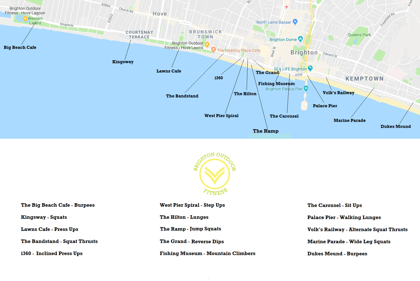 There will be 5 stations set out at every 200m along the seafront consisting of slam balls, dumbbells, battle ropes, barbells and kettlebells.